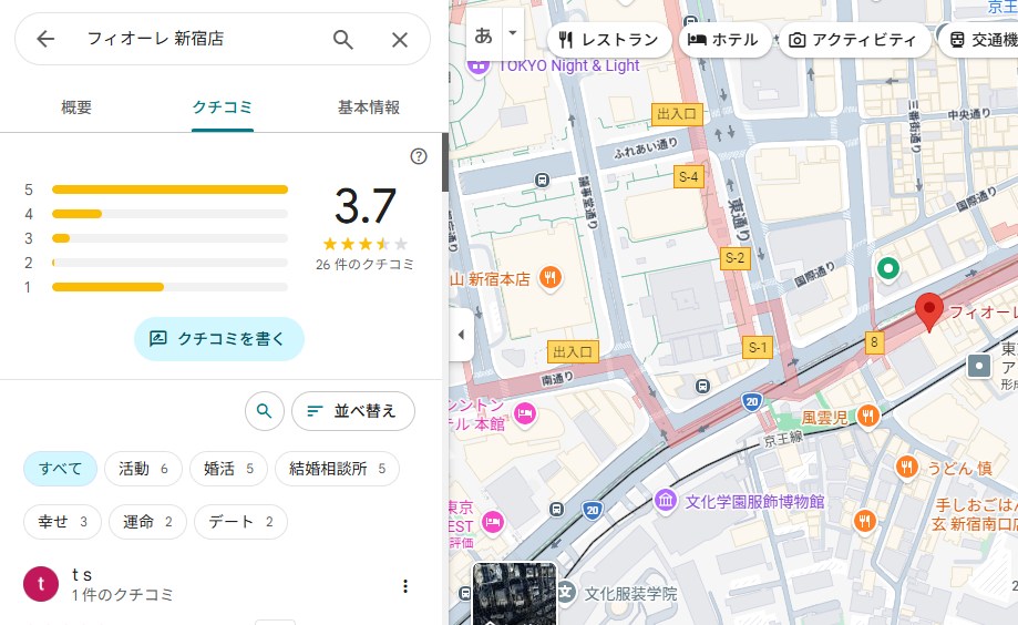 フィオーレ 新宿店の気になる口コミ