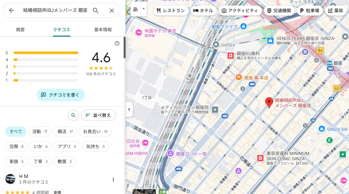 この口コミを見る限り、銀座店は初めて婚活する人でも安心感がある店舗と言えそうです。