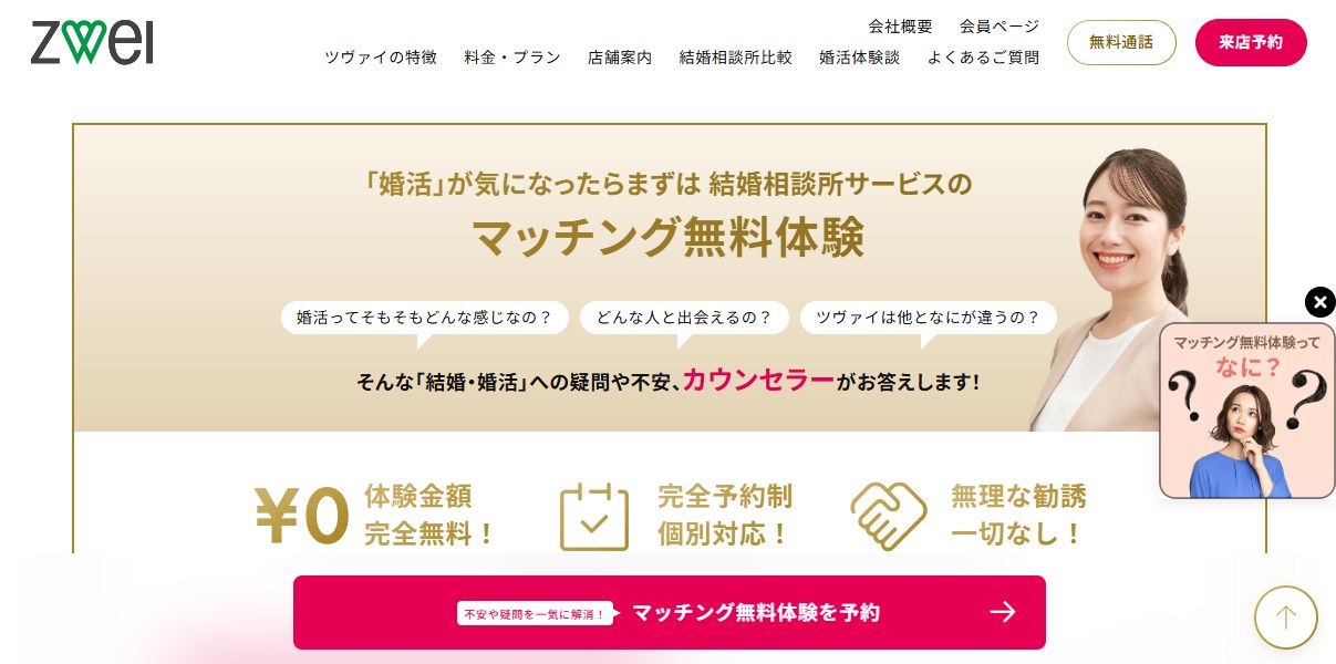 キャンペーンは現在しておりませんが、ツヴァイでは対象の方に入会金や月会費の割引プランがあります。