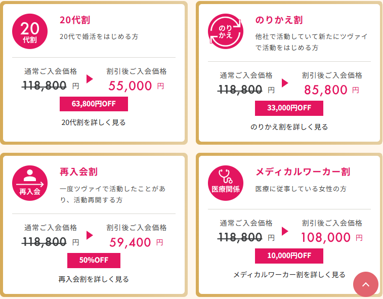 成婚料不要、各種割引が有りトータルのコストを抑えることができます。