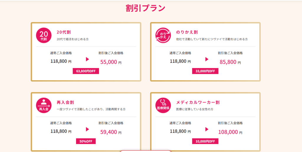 スタートアップ応援(20代向け割引)として30,000円(税込33,000円)〜の割引があります。