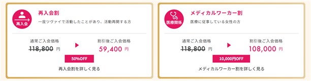 「入会金割引」や「お試しコースの初月無料」などの特典が実施されるケースあり