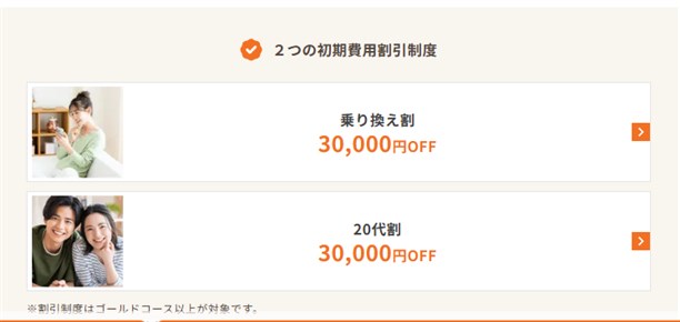 入会金割引や「のりかえキャンペーン」で登録料半額などの特典あり