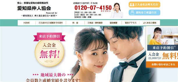 名古屋婚活 | 名古屋市中区(栄エリア) | 月会費 7,000円〜/成婚料あり | 地域密着型で低価格。アットホームな雰囲気 |