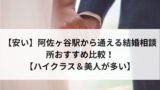 「阿佐ヶ谷駅から通いやすくて、できれば安く、しかもレベルの高い出会いがある結婚相談所ってないの?」