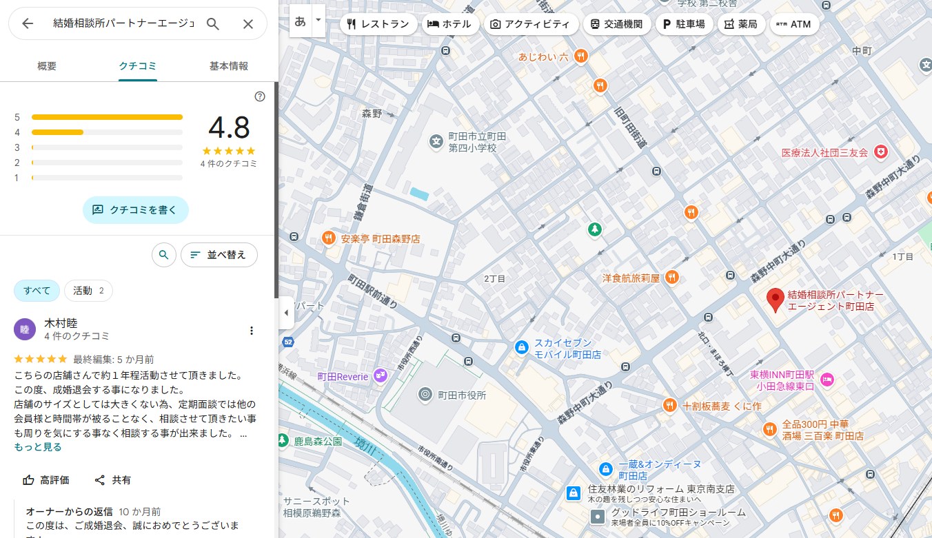 パートナーエージェント 町田店の気になる口コミ