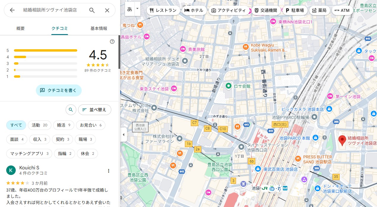 ツヴァイ 池袋店の良い口コミ